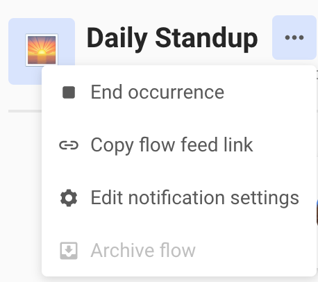 From the three-dotted menu in the flow feed header, click End occurrence.